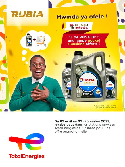 News Profitez de l’offre TotalEnergies ! Pour 6L de Rubia tir acheté, nous vous offrons une Sunshine Pocket et 1L de Rubia Tir ! Publié le 04/04/2022 1 min de lecture